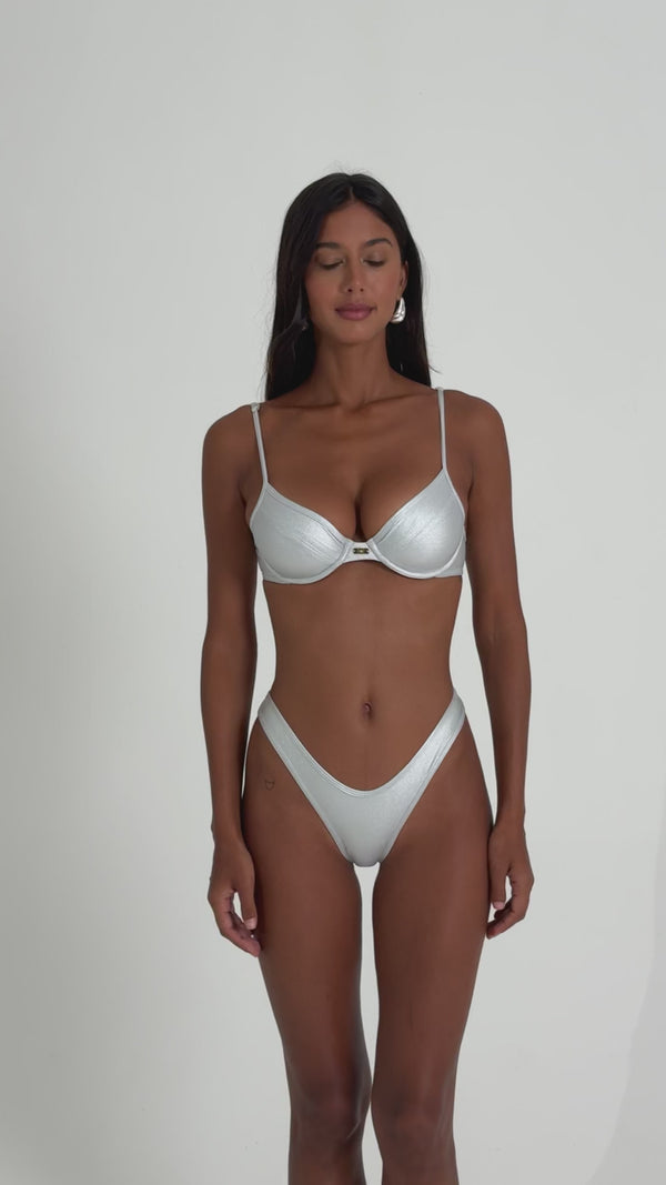 Refresh availabilityA full coverage bottom with a scooped front and detailed bind. Flattering and comfortable with a clean finish. Crafted in the finest quality Italian-made metallic nylon.