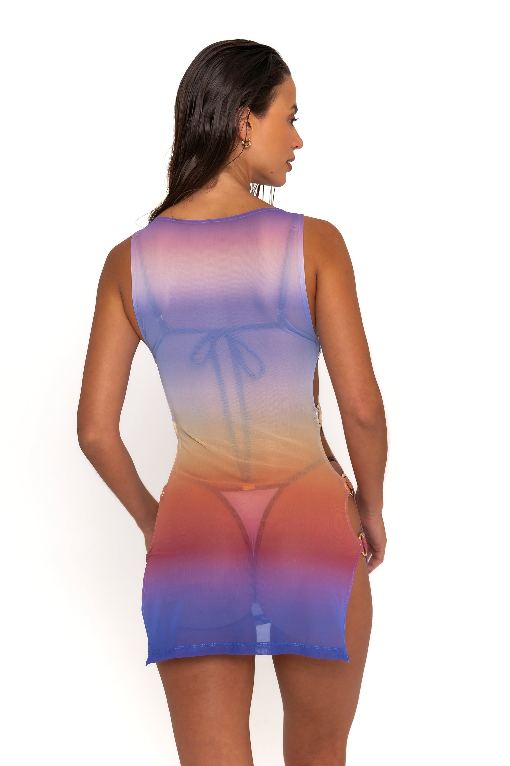 Refresh availabilityMeet the Moana Dress, crafted from recycled mesh fabric, it hugs your curves beautifully, with side cutouts and gold rings for added allure.